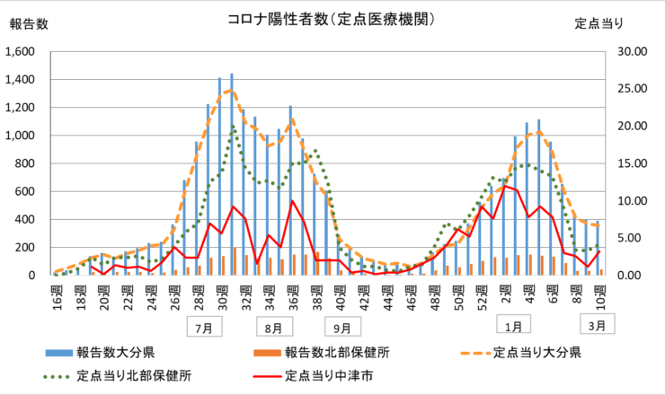 おはようございます。中津市議会議員の大塚正俊です。 さて、大分県は、令和6年10週(3月4日~3月10日)の新型コロナウイルスの感染者数が58定点医...