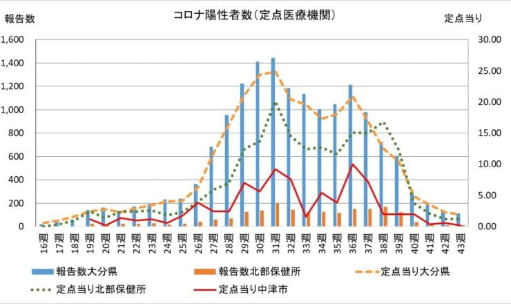 おはようございます。中津市議会議員の大塚正俊です。 さて、大分県は、43週(10月23日~10月29日)の新型コロナウイルスの感染者数が58定点医療...