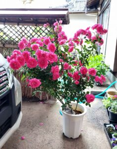 さて、くるめ緑化センターにある親戚の亀崎開楽園に行って、今年も薔薇の花を購入しました。