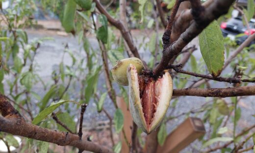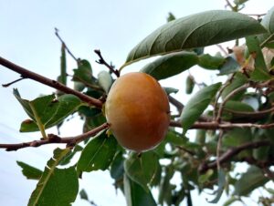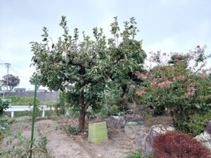 昨年、たくさんの実を収穫しましたが、今年は裏年で5個位しか付いていません。