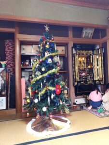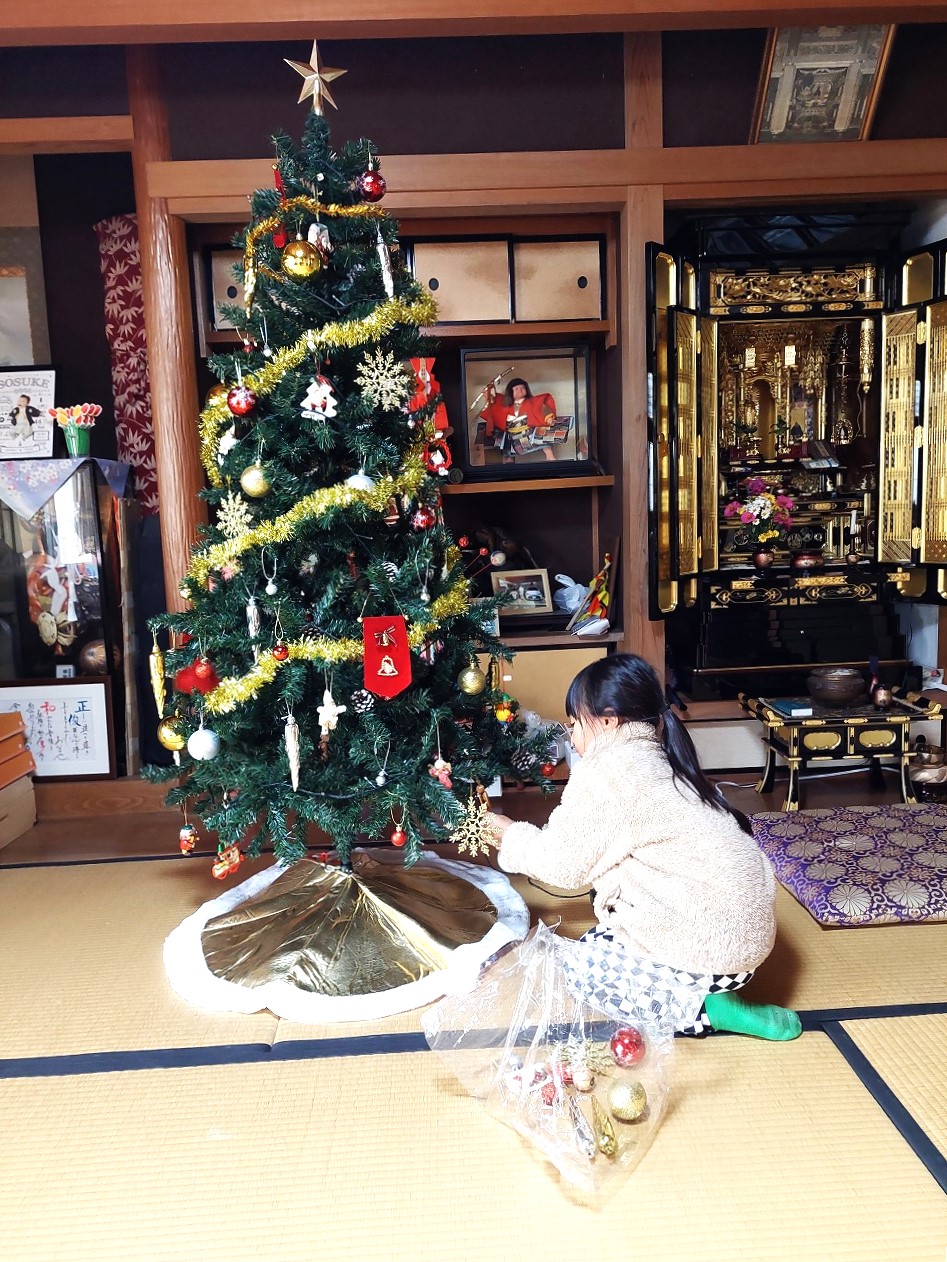 夕方、学校帰りに孫が来たので、クリスマスツリーを一緒に飾りました。