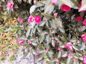 庭には、赤やピンク、白の山茶花が4本植わっていますが、亡くなった母が植えたもので、40年以上になります。