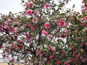 さて、庭に植えている「べにわびすけ(紅侘助)」が見ごろを迎えました。