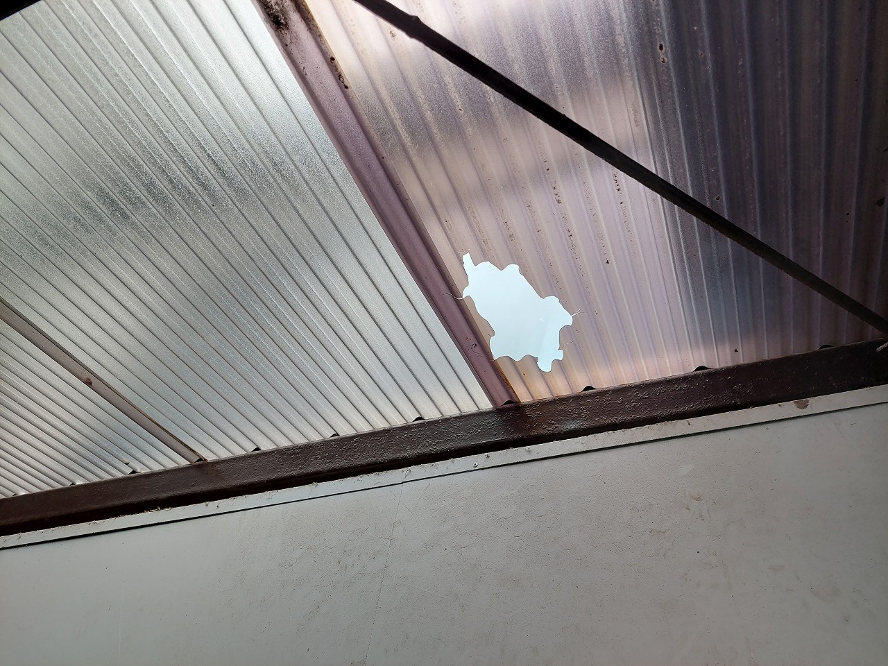 トタンがだいぶ劣化しているので、猫の足で突き破ったみたいです。