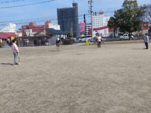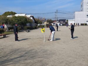さて、豊陽公園グランドで開催された市役所退職者会のグラウンドゴルフ大会に参加しました。