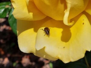 プライベート・趣味薔薇にマメコガネ虫がやってきた。2025.05.10 おはようございます。中津市議会議員の大塚正俊です。昨日は激しい雨が降りました。野菜たちにとっては恵みの雨ですが、浸水被害が気になる季節に入りました。さて、庭に植えている薔薇の花にマメコガネ虫がやってきました。いい香りのする薔薇が大好きで、毎朝、ピンセットでチマチマ駆除しています。昨日は5匹駆除しました。今年は、根元にオルトラン粒剤を撒いたので、少ないようです。殺虫剤は環境に良くないので、コガネムシのやってくる香りの強い薔薇だけに、必要最小限の散布等を行っています。 Post Share RSS プライベート・趣味ソラマメを初収穫しました。農家民泊「みどりさん家」で田植え体験