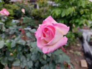 この艶やかな薔薇は、白色に鮮やかなピンクの覆輪を見せる巨大輪で、繊細なフルーツの香りがします。