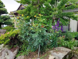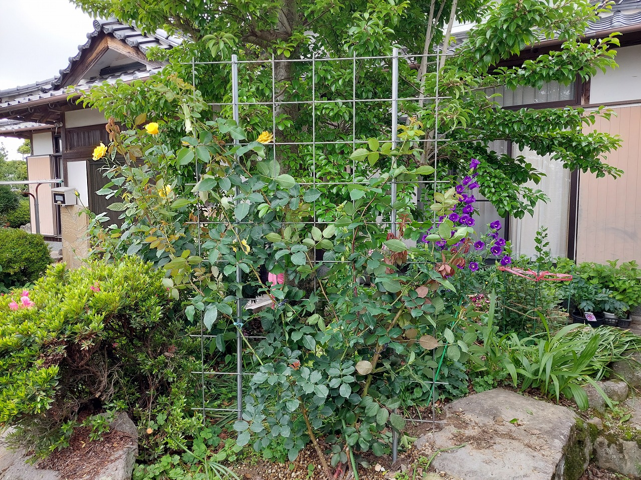 さて、庭のツル薔薇「ローズうらら」にフェンスを立てました。