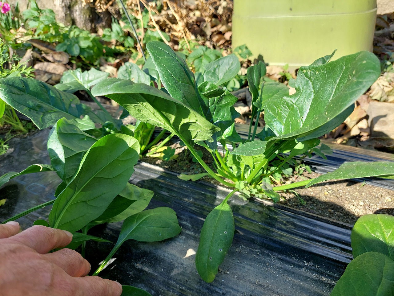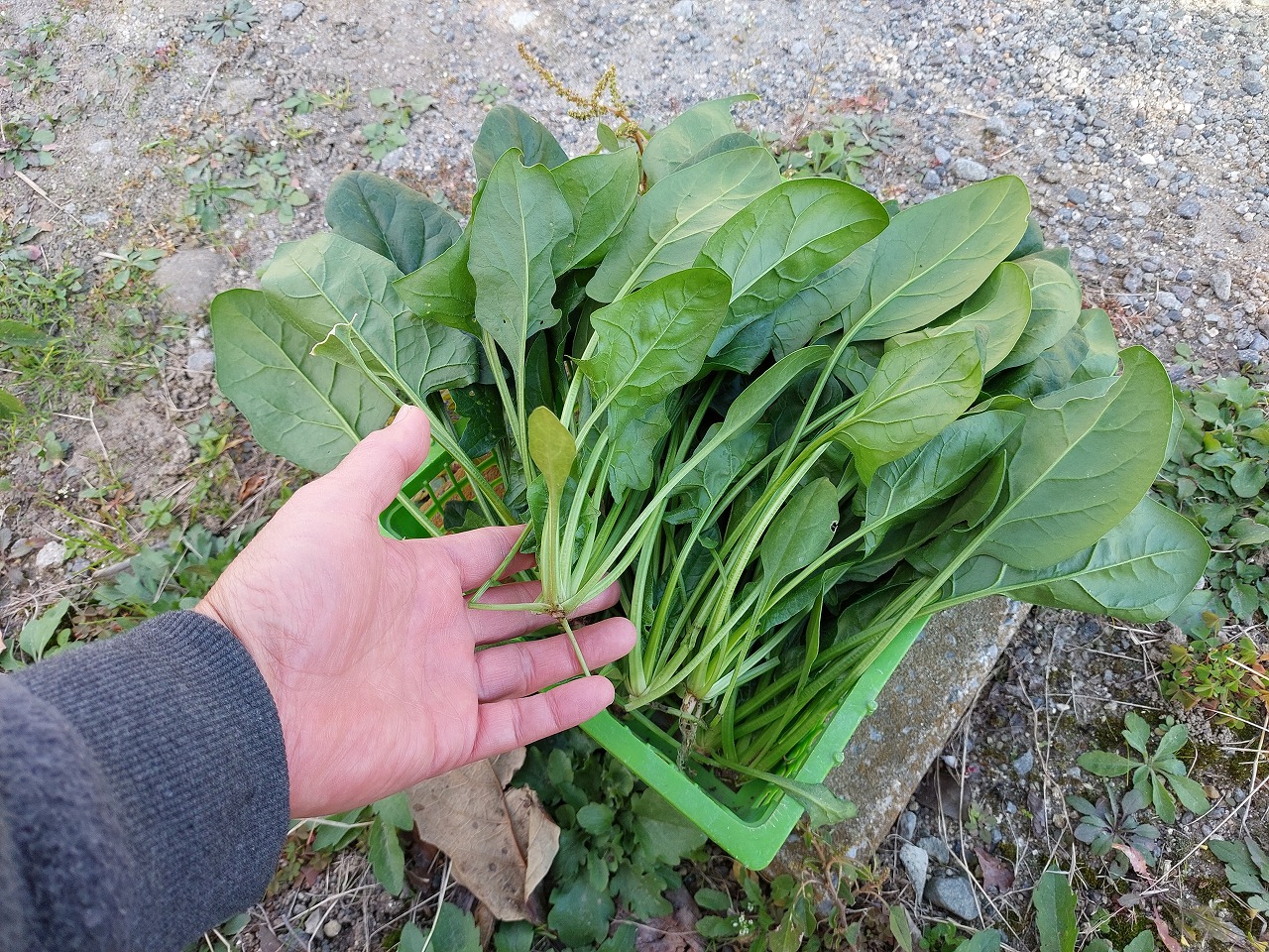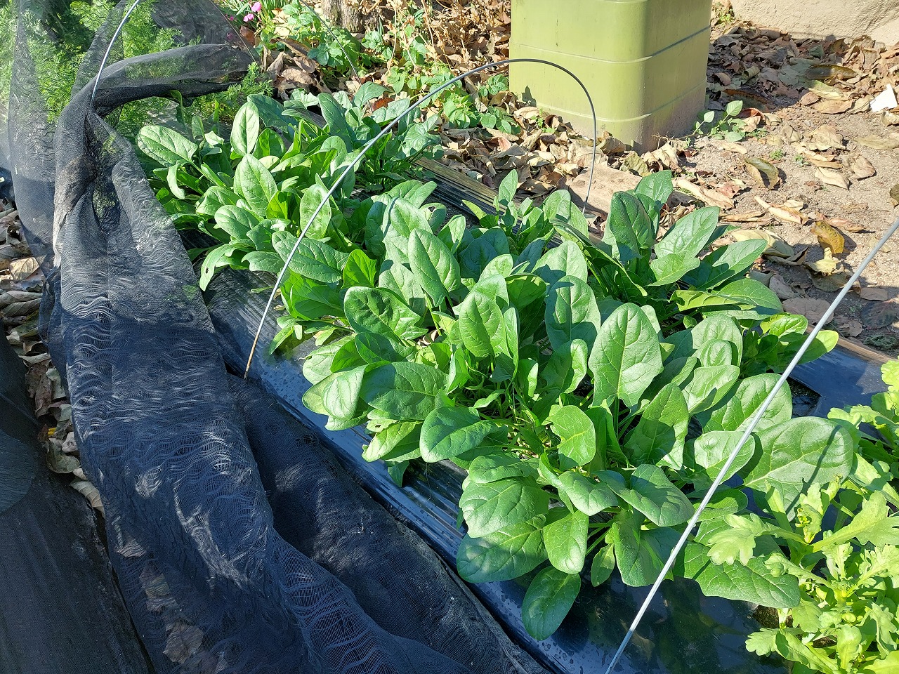 寒さにあたり、ホウレンソウの葉が厚くなってきました。