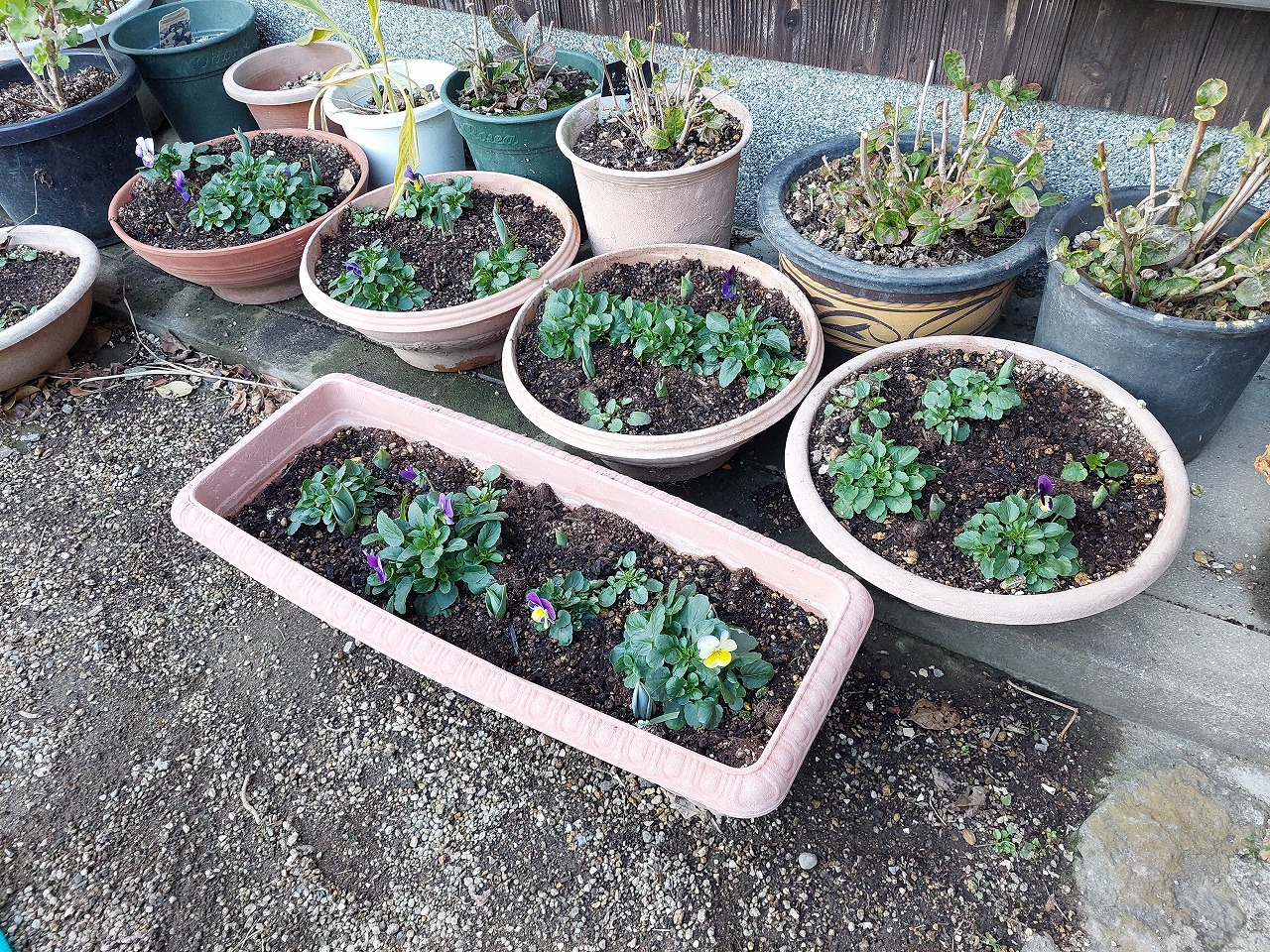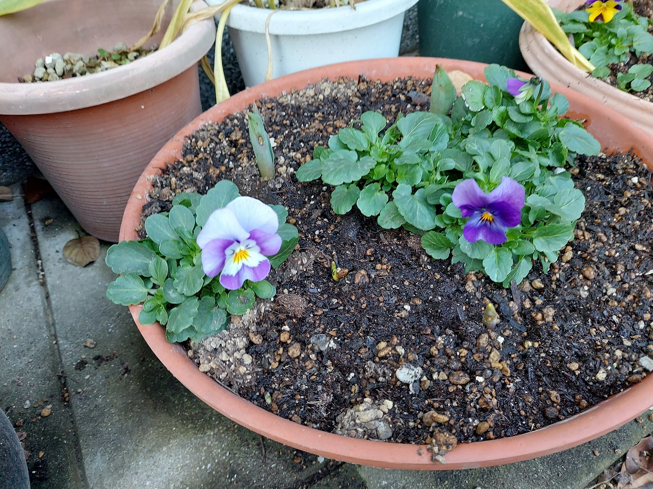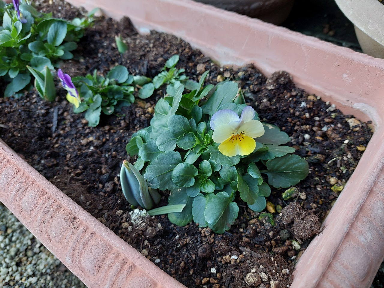元々は、チュウリップを植えたプランターですが、花が咲くまでに時間がかかるので、あとからスミレを植えました。