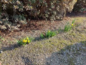 さて、庭に植えている黄色のラッパ水仙が咲き始めました。