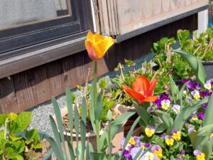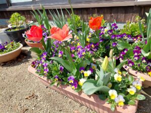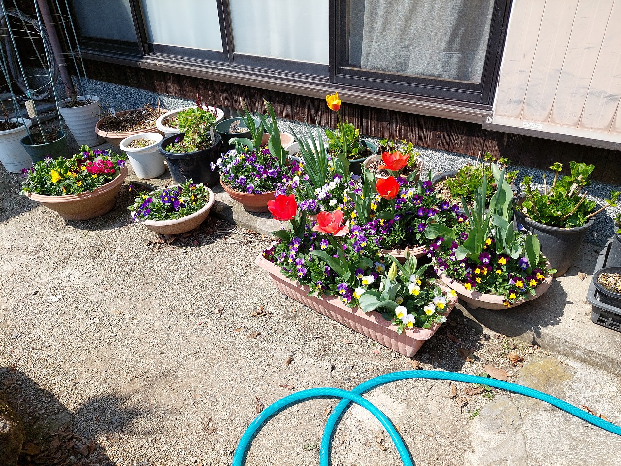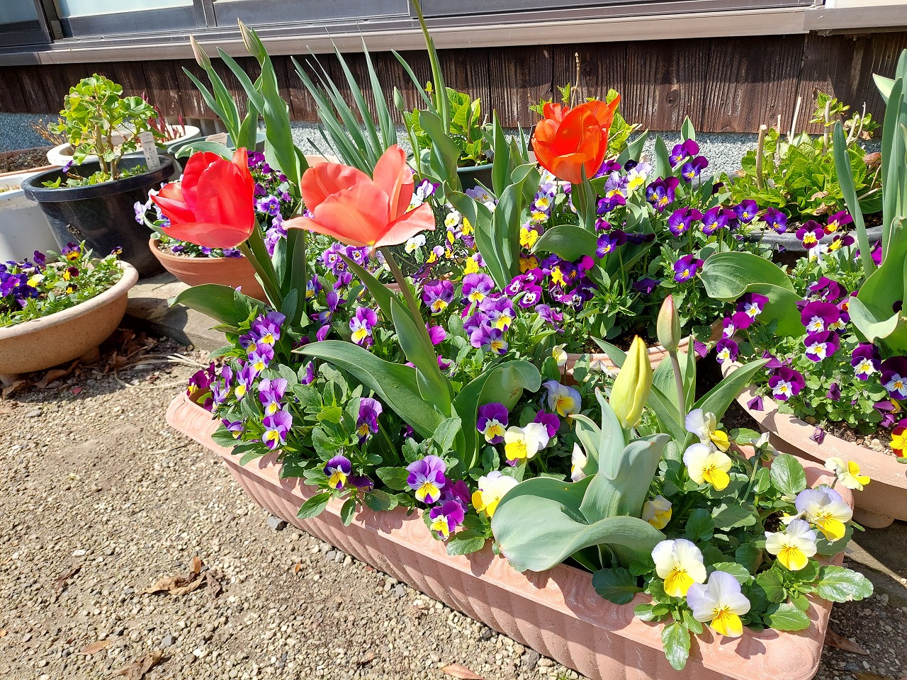 花が咲くまで、プランターが寂しいので、妻が三色すみれを植えました。