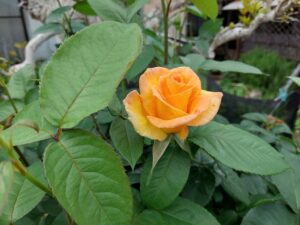 黄金色で四季咲き、中大輪、微香の花で、病気に強く育てやすいバラです。