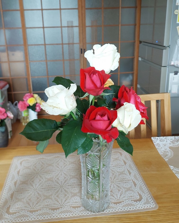 雨が降ると花が痛むので、切り花にして花瓶に挿しました。