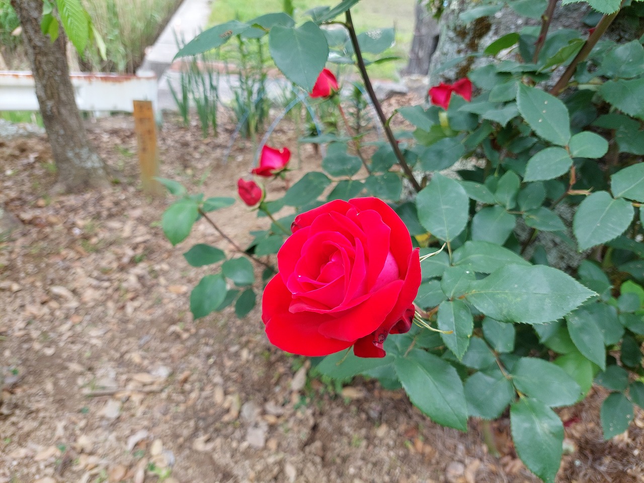四季咲き大輪、鮮やかな赤色の「宴」です。