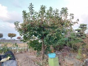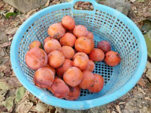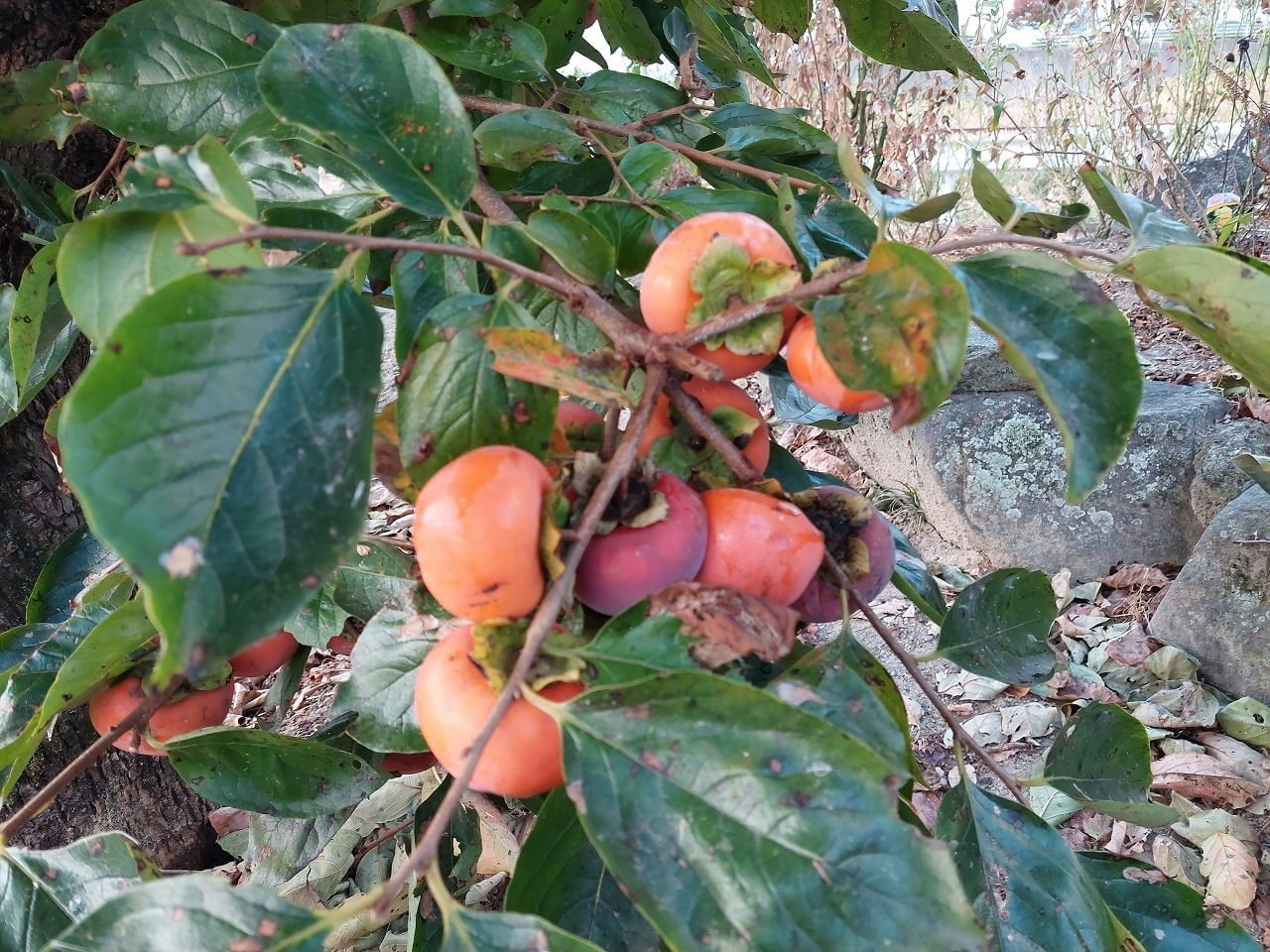 子どもの頃に、山の神様に何個が残すようにと祖母ちゃんに言われたので、完熟の3個を残しました。