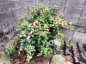 例年、万両の木にも実が付いていましたが、風で折れてしまって今年は付いていません。