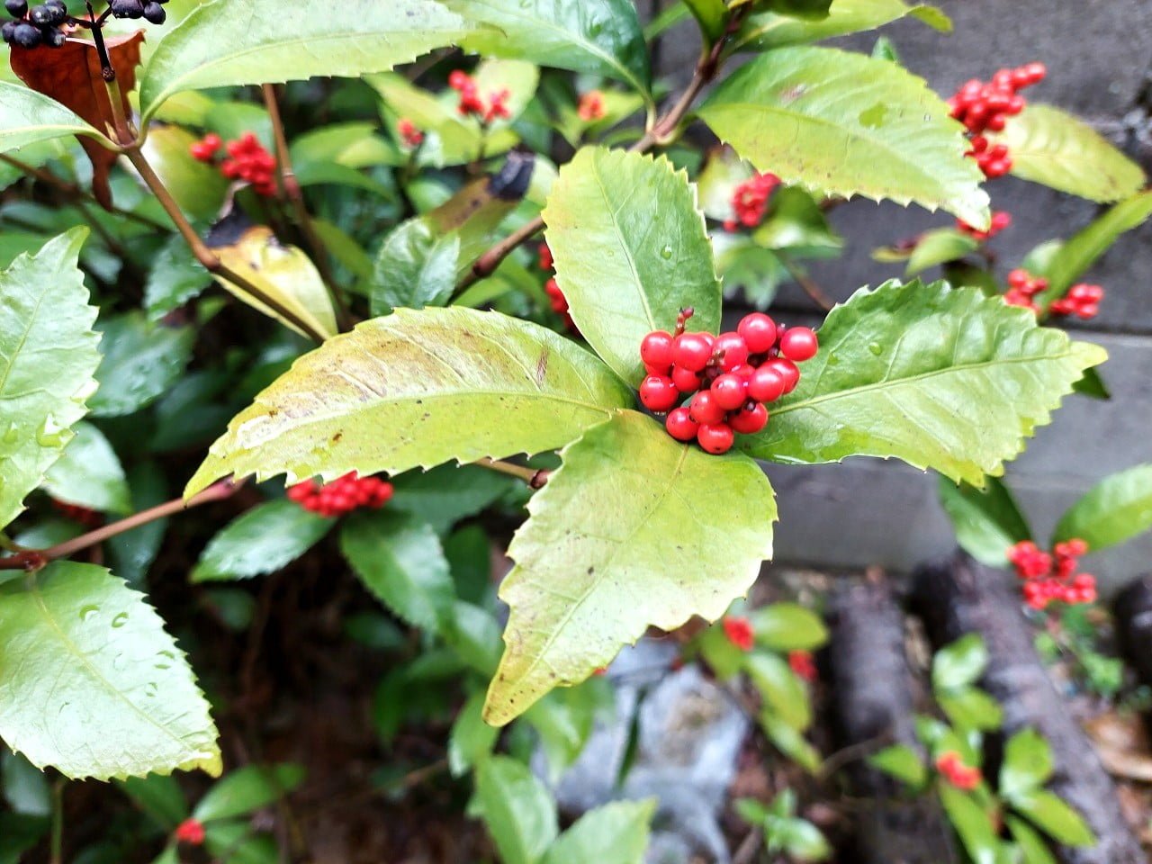 さて、庭に植えている千両の木にたくさんの実が付きました。