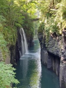 途中、竹田市音無井路円形分水を見学し、高千穂峡や高千穂神社、天岩戸神社を巡りました。