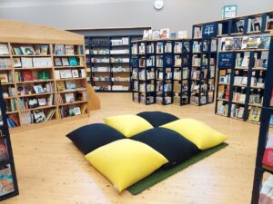 拠点施設Katerieは2020年7月にオープンし、図書館「ぶん文Bun」やものづくりラボ、コワーキングスペース、交流スペース、キッズスペースなどを配置し、秘境のワーケーションプレイスとなっています。