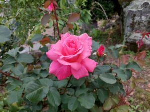 次に、濃いピンクの香りの強い「芳純」が咲きました。化粧品メーカーの香りが漂います。