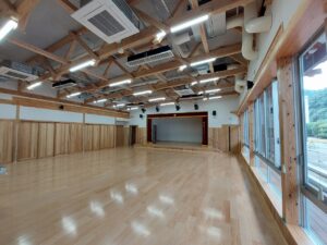 中津市産材をふんだんに使用し、木造・平屋建て、延べ床面積837.83㎡の施設が完成しました。
