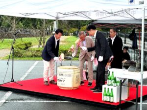 道の駅「耶馬トピア」が醸造している「そば焼酎 いちそば」の蔵出し・鏡割りも行われ、新酒の試飲も行われました。
