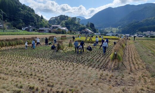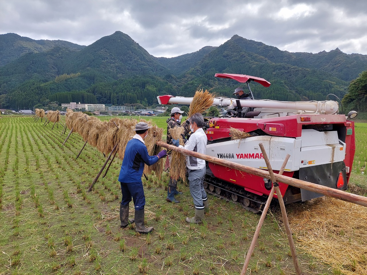 日曜日の午後から「耶馬溪にっぽん酒をつくる会」の稲こぎに参加しました。