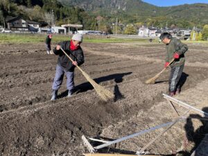 最後に、「たかぼうき」で土をかけて作業は終了しました。