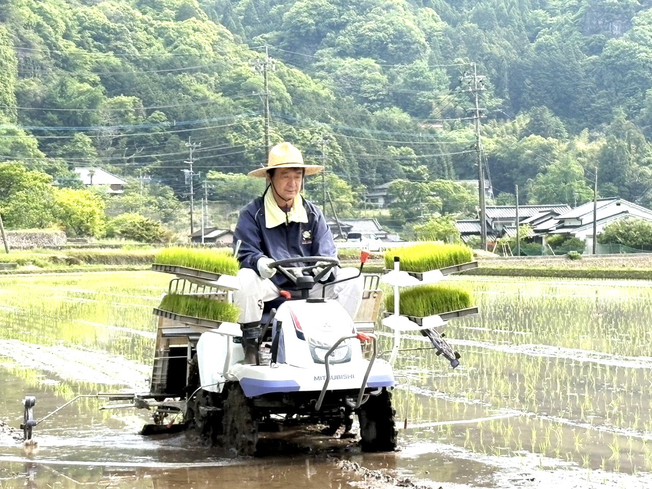 約40アールの田んぼに、お米(ひとめぼれ)の苗を機械で植え、植えつぎをしました。