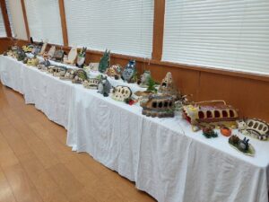 作品展示会では、陶芸教室やパッチワーク教室、切り絵教室等の力作が展示されました。
