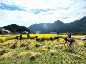 地域振興 耶馬溪にっぽん酒をつくる会の稲刈りに参加 2023.10.15 おはようございます。中津市議会議員の大塚正俊です。 昨日、耶馬溪にっぽん酒をつくる会の稲刈りに参加しました。 市内外から約100名の方が参加し、3反ほどの田んぼの稲を刈り、掛け干しにしました。 当初は半分程度を刈る予定でしたが、たくさんの方が参加してくれたので、全部を刈りました。 コロナの影響で、3年ぶりとなった直会では、錦雲豚の焼肉で美味しいお酒を頂きました。 来年2月には三和酒類さんが醸造した新酒が出来上がります。 Post Share RSS 地域振興 沖代小の6年生とまちなみ歴史探検 地元八社神社の秋祭りで豊前蛎瀬神楽を奉納