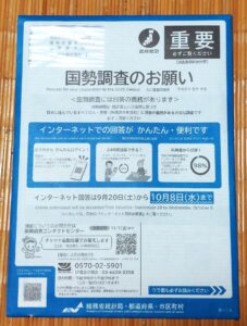 さて、国勢調査の調査書類が届いたので、インターネットで回答しました。