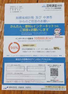 インターネットでの回答は、10月8日までとなっていますので、スキマ時間を活用して回答をお願いします。なお、紙の調査票を郵送する、紙の調査票を調査員に提出する方法も可能です。