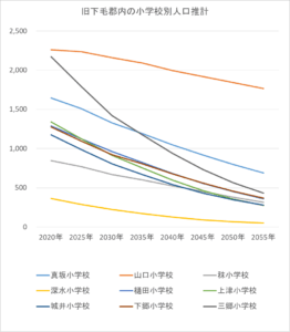 さて、3月議会に向けて、小学校区別の将来人口推計をしました。